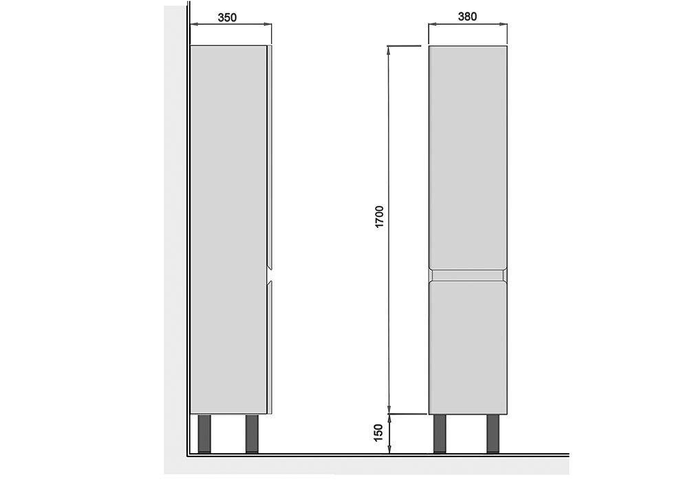 Пенал Palermo P-38-k-U бетон светлый Мойдодыр — идеальное решение для компактной ванной комнаты. С размерами 38 см в ширину, 170 см в высоту (регулируемая до 185 см) и 35 см в глубину, он гармонично вписывается в любой интерьер, оптимально используя доступное пространство.