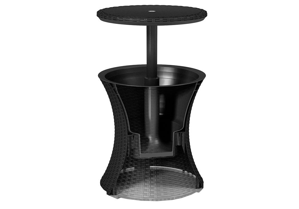 Инновация на рынке садовой мебели - стол-трансформер "Cool Bar Rattan", который имеет уникальную конструкцию. В сложенном состоянии - это компактный кофейный столик, а в подняв столешницу он превращается в классический бар с контейнером для охлаждения напитков. Корпус изделия выполнен из искусственного ротанга коричневого цвета, стойкого к воздействию солнца и влаги. Максимальная нагрузка на стол составляет 30 кг.