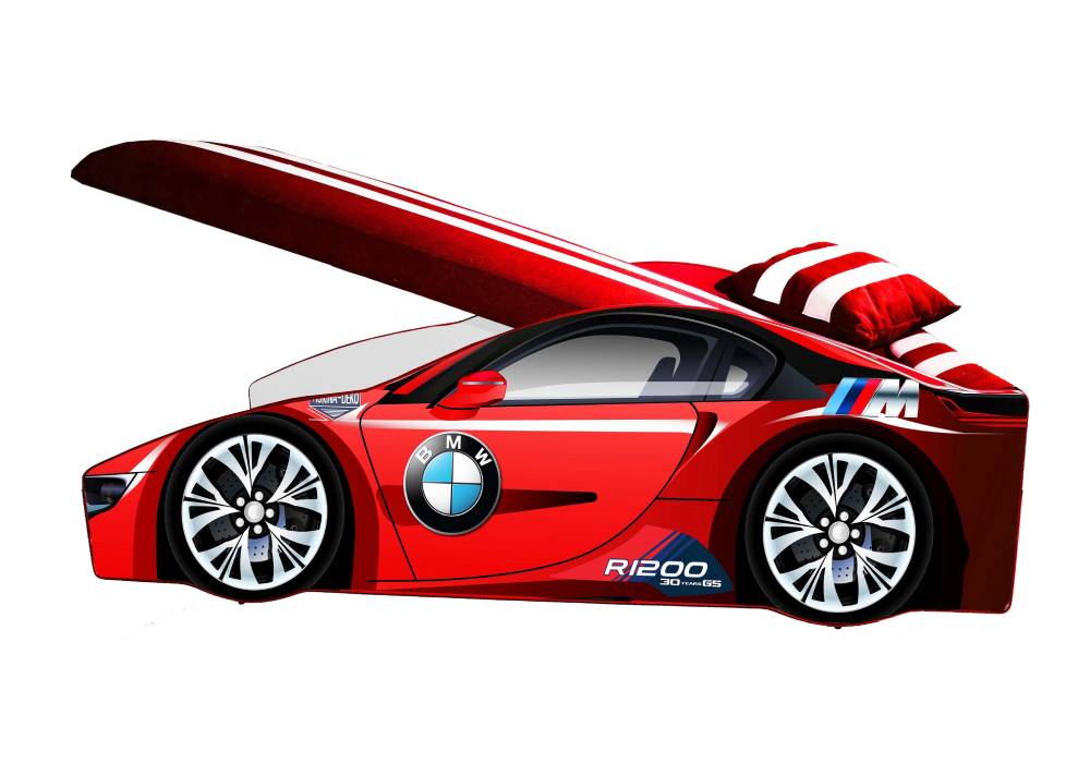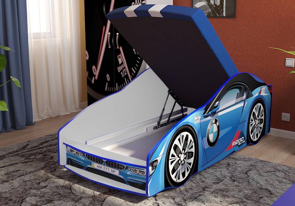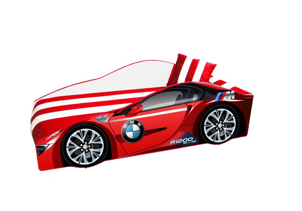 Ліжко укомплектована матрацом, спойлером і подушкою в кольорі обраної машинки.