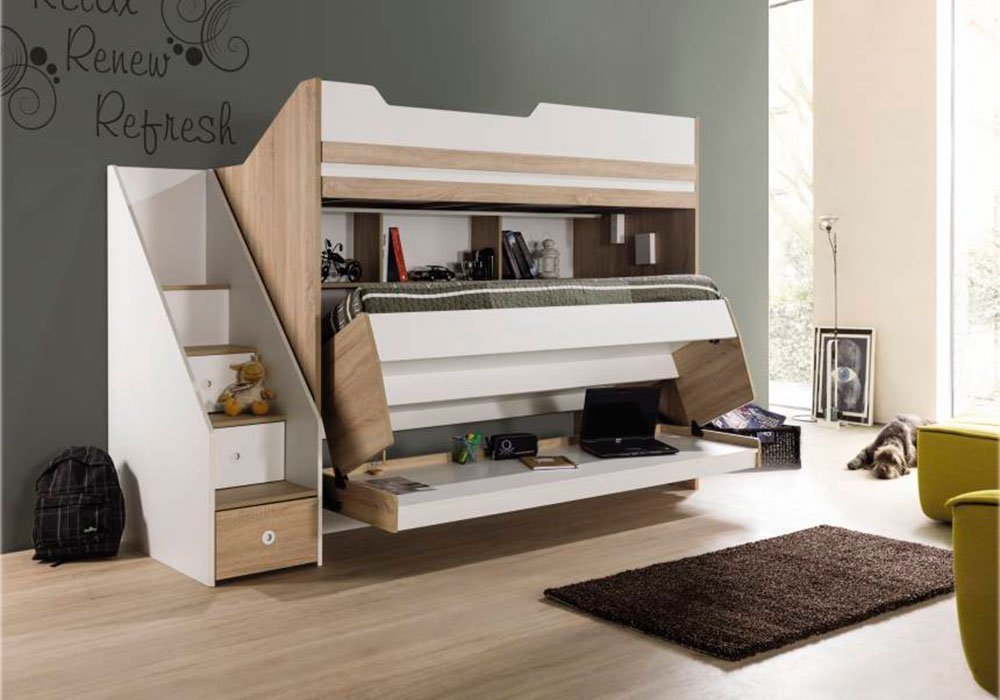 Двох'ярусне ліжко "City" від турецького виробника Kupa має сучасний дизайн в урбаністичному стилі . Дана модель максимально корисно використовує простір, оскільки включає в себе два необхідних елементи дитячої кімнати: письмовий стіл та ліжко. Також на другому ярусі ліжка обладнано додаткове спальне місце. А задня стінка обладнана невеликими полицями.