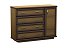 Комод АКМ-32-45 - класичний комод на цоколі, який складається з чотирьох великих висувних ящиків на роликових напрямних і дверцята, за якою розташовані полки. Торці даху комода обклеєні кромкою ПВХ 2 мм. Все решта торці меламін. Фасади виготовлені з ламінованого ДСП . Кольори комбінуються в будь-якому варіанті.