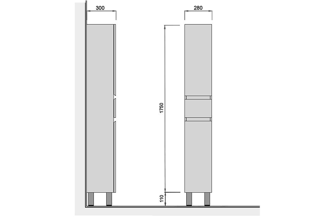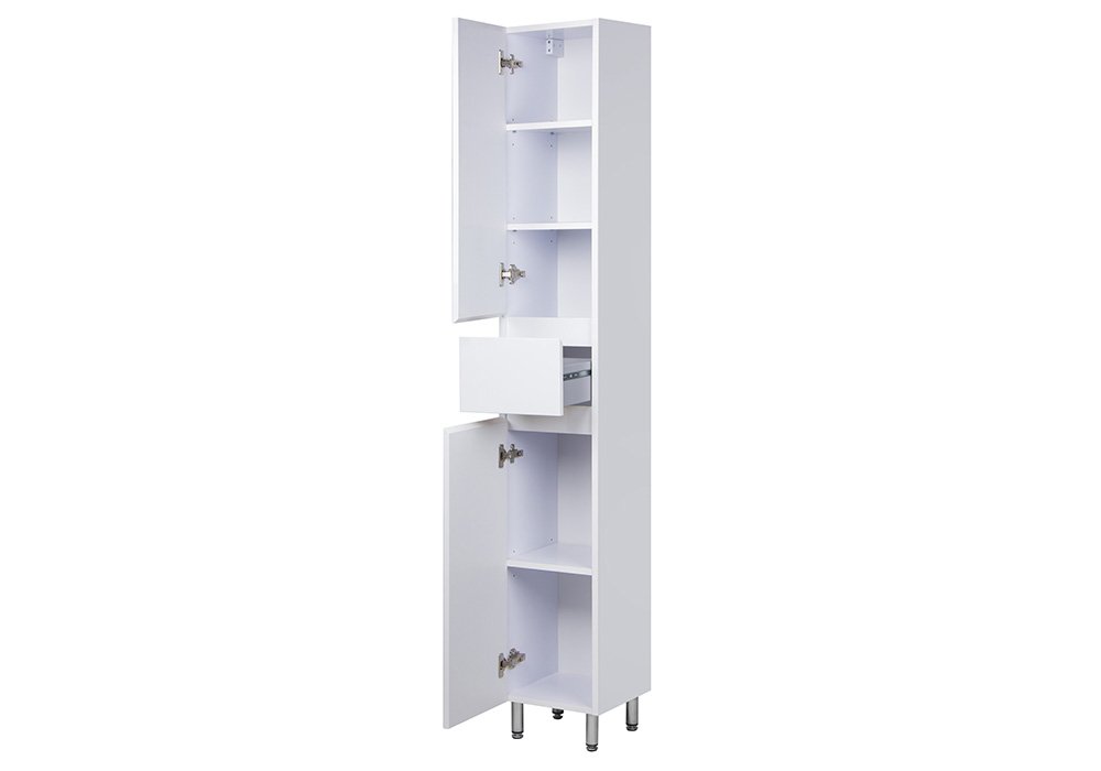 З трьома відділеннями, одним ящиком і трьома поличками, цей пенал пропонує зручне зберігання для різноманітних ванних приналежностей, допомагаючи підтримувати порядок у вашій ванній кімнаті. Використання якісних матеріалів і надійних напрямних Hettich робить пенал не лише стильним елементом інтер'єру, але й надійним помічником в організації вашого простору.