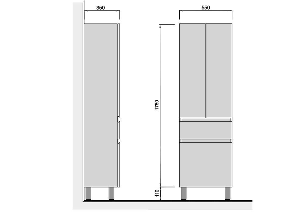 З п'ятьма відділеннями, одним ящиком та двома поличками, пенал пропонує достатньо місця для різноманітних ванних приналежностей, допомагаючи підтримувати порядок у вашій ванній кімнаті. Завдяки використанню якісних матеріалів та надійних напрямних Hettich, цей пенал стане не лише стильним елементом декору, але й зручним помічником в організації вашого простору.