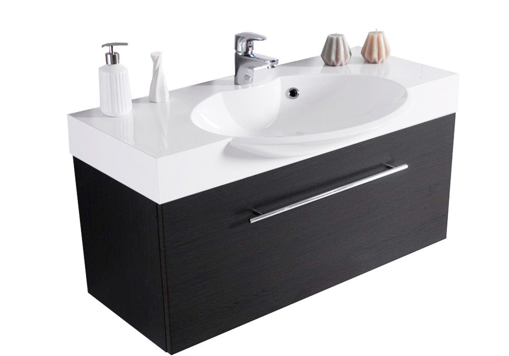Тумба з умивальником "Sumatra 98" додасть витонченості та елегантності ванній кімнаті. Тумба оснащена містким ящиком з плавним закриттям, в якому зможуть розміститися ваші лазневі приналежності. Комплект оснащений умивальником з литого каменю в формі раковини. Тумба виготовлена з високоякісного МДФ, який захищає від вологи і зносу вінілова плівка, а чудова за якістю європейська фурнітура "Linken system" LS Box прослужить довгі роки.