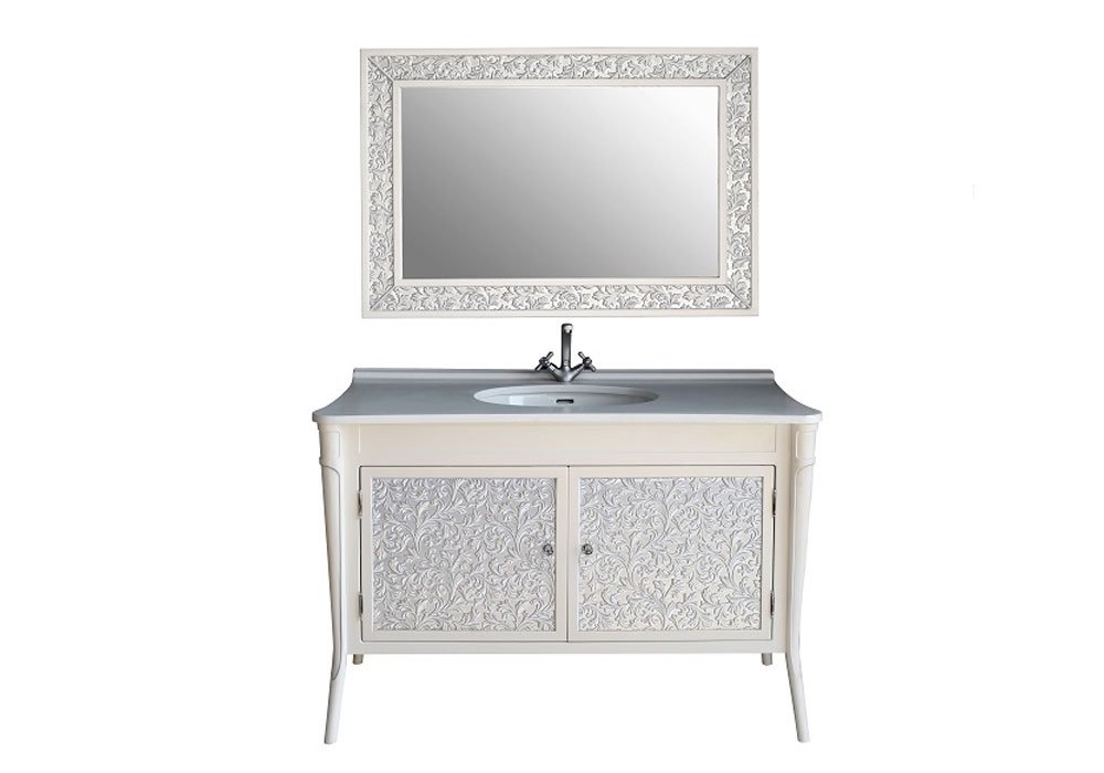 Стильна і витончена тумба з умивальником "Валенсія 130" оснащена розкішними орними дверцями. Умивальник ТМ "Devit", виконаний з штучного каменю, стане продовженням стільниці. Функціональність тумбі надає приховане відділення за дверцятами, в якому розташувалися три місткі ніші з полками і два висувні шухлядки на телескопічних направляючих.