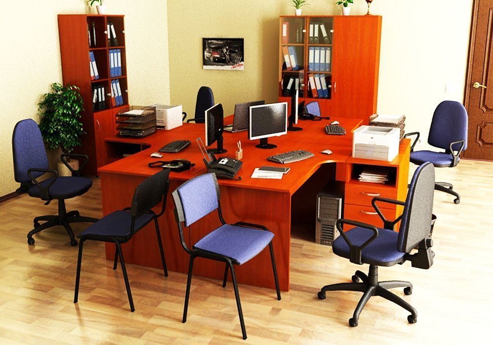 Стіл може комплектувати допоміжної тумбою з ящиками і бічним столиком. Також, якщо кабінет призначений ще й для проведення нарад, додатково можна встановити приставних конференц-стіл.