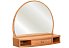 Дзеркало «Світлана» володарка м'яких обрисів завдяки своїй напівкруглої формі. Модель являє собою гармонійний дует дзеркала і полички, що дуже зручно. Стільниця з висувним ящиком і двома бічними відкритими секціями оптимальне рішення для зберігання дрібних предметів, таких як ключі, гребінці, записні книжки. Виріб, виготовлений з масиву дуба і шпонированной деревної плити, екологічно безпечно і практично в спальні.