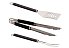 Набір аксесуарів для гриля " Comfort 3 (2)" виконаний з якісних і надійних матеріалів, основним з яких є нержавіюча сталь . У комплект входять три інструменти: щипці, лопатка і вилка. Подовжені ручки оснащені спеціальним зручним покриттям, що робить інструменти комфортними і практичними у використанні.
