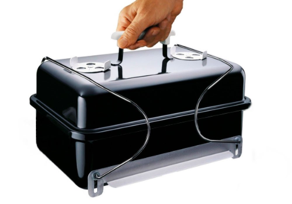 Переносний вугільний гриль "Go-Anywhere Holzkohle" американського виробництва, має невелику вагу, який дозволяє брати його в походи або на пікніки в паркову зону. Виріб має сталевим корпусом покритим жаростійкої порцелянової емаллю. У даній моделі передбачена практична і швидка збірка і зручна ручка, яка не нагрівається під час готування.