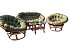 Комплект меблів "Папасан d0420 " з софи, 2 крісел і кавового столика стане прикрасою кухні або тераси. Ваші гості закохаються в вид і комфорт. А власники цього комплекту полюблять його за довговічність і простоту в догляді. У комплект входять подушки з наповненням поролонова крихта і обшивкою поликоттон . Товщина скла, використовуваного в даному комплекті, - 0,5 см.