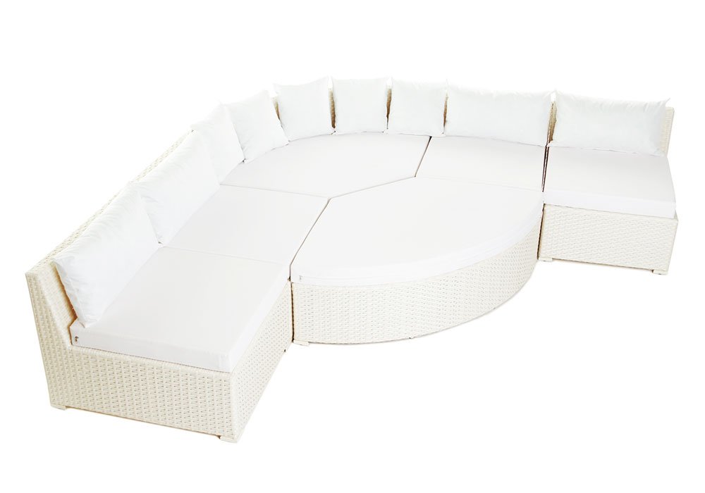 Радіусний пуф "Оазис" практичний предмет меблів в стилі "Лаунж", він подарує вам острівець для відпочинку. Виріб виконаний на міцному алюмінієвому каркасі, обплетені якісним іншими сучасними матеріалами. Пуф можна використовувати як самостійний предмет меблів або в комплекті з диванами колекції "Оазис". Даний предмет меблів дуже універсальний тим, що його використовують в якості продовження дивана, місця для настільних ігор або взагалі як столик, якщо зняти подушки.