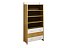 Підлітковий шафа з полицями "Ельф 10+" компанії Енран допоможе оптимально розподілити простір в кімнаті підлітка. Його конструкція має три широких висувних ящика , що підходять для зберігання одягу або особистих речей, і чотири відкритих полки для книг або зошитів. Виріб виконаний з масиву бука, обшитого шпоном . Фасади ящиків і декоративний виступ над кришкою шафи покриті кольоровою емаллю.