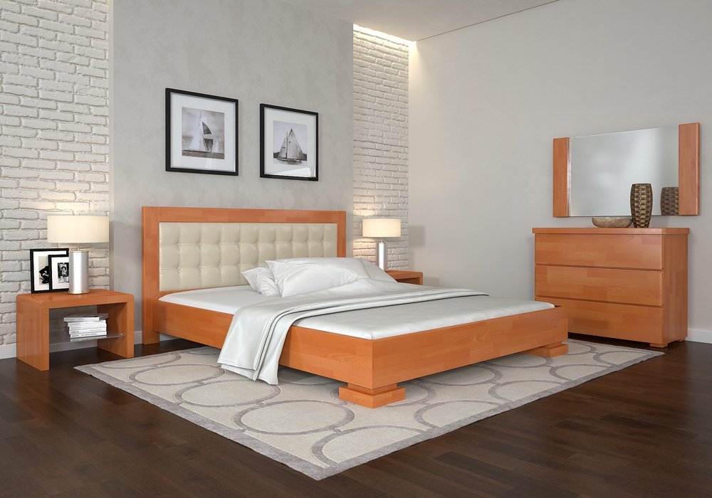 Дерев'яне ліжко "Монако" - ідеальне рішення для вашої спальні. Вона не тільки має унікальний зовнішній вигляд, але і виготовлена з натурального щита сосни. Зверху всі деталі покриті італійським лаком, який абсолютно безпечний для здоров'я. Висока узголів'я має оббивку у вигляді квадратів. Особливий вишукування виробу надають незвичайні опори. Підстава під матрац - ортопедичні ламелі товщиною 8 мм з відстанню між ними 5,5 см.