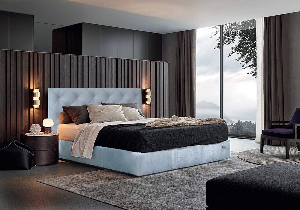Шлюбне ліжко "Брістоль" - еталон величі і строгості. Прямокутне узголів'я прошито подвійною строчкою в формі великих рівних ромбів. Шляхетний вид ліжка досягається завдяки застосуванню якісних матеріалів. Містка глибока ніша здатна помістити величезну кількість пастельних приладдя.
