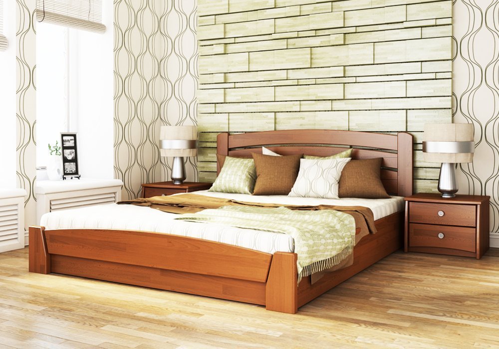 Ліжко за вашим бажанням може бути виготовлена з букового щита або масиву бука. Ліжко обладнана містким ящиком для білизни та підйомним механізмом. Конструкція: підстава ліжка рамкову з підйомним механізмом, виготовлене з гнучких букових ламелей, що створюють додатковий ортопедичний ефект. Використовується фурнітура від німецьких виробників. Ліжко оснащена ящиком для білизни.