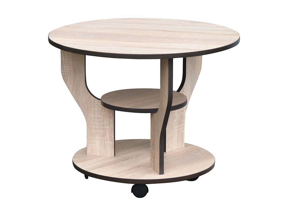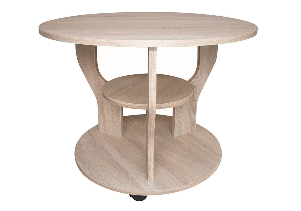 Стіл журнальний "Крокус" круглої форми має середній розмір. Займає небагато місця, але досить місткий. Посилена середня полку може витримувати значні навантаження. Журнальний стіл забезпечений колісними опорами. Широка колірна гамма вироби дозволить з легкістю вписатися в приміщення з будь-яким інтер'єром. Фасади виконані з ламінованої ДСП і захищені по периметру від зовнішніх пошкоджень захисною кромкою ПВХ, що дозволить зберегти не тільки функціональність а й зовнішній вигляд виробу протягом багатьох років.