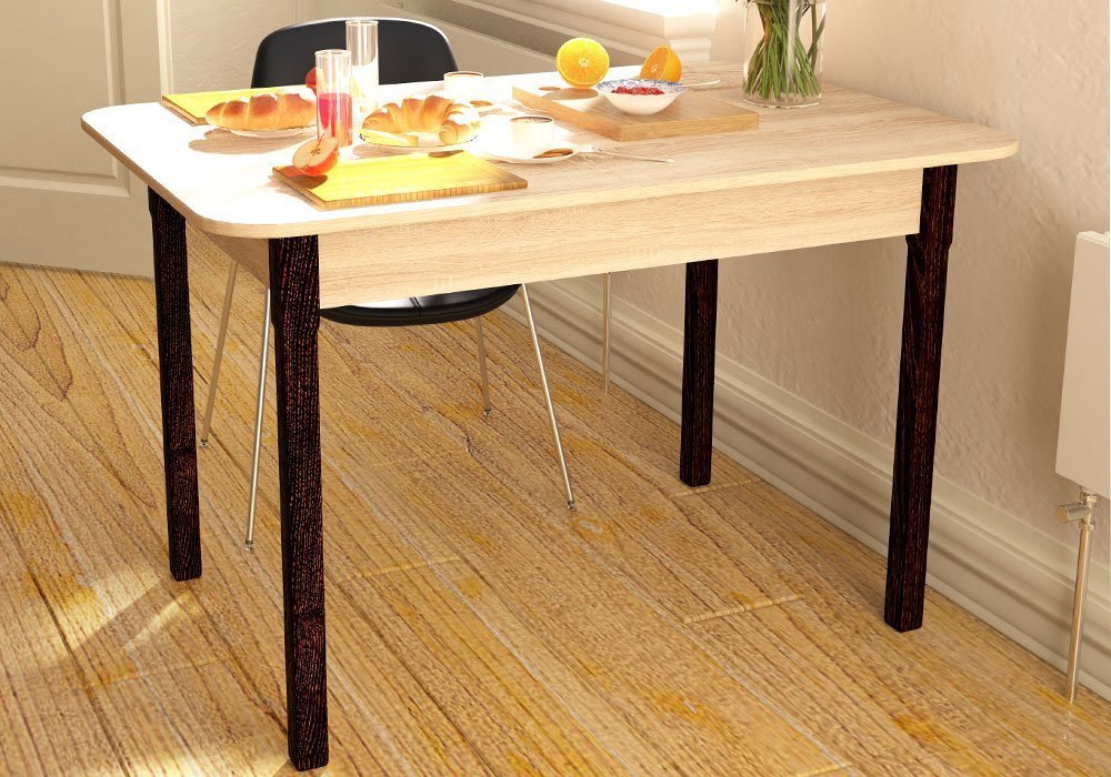 Кухонний стіл з дерев'яними ніжками від компанії "МАКСІ-Меблі" - комфортабельний і зручний стіл, буде хорошою знахідкою для Вашої кухні і Вашої чудової родини. Широка колірна гамма вироби дозволить з легкістю вписатися в приміщення з будь-яким інтер'єром. Стільниця виконана з ламінованої ДСП і захищені по периметру від зовнішніх пошкоджень захисною кромкою ПВХ, що дозволить зберегти не тільки функціональність а й зовнішній вигляд виробу протягом багатьох років.