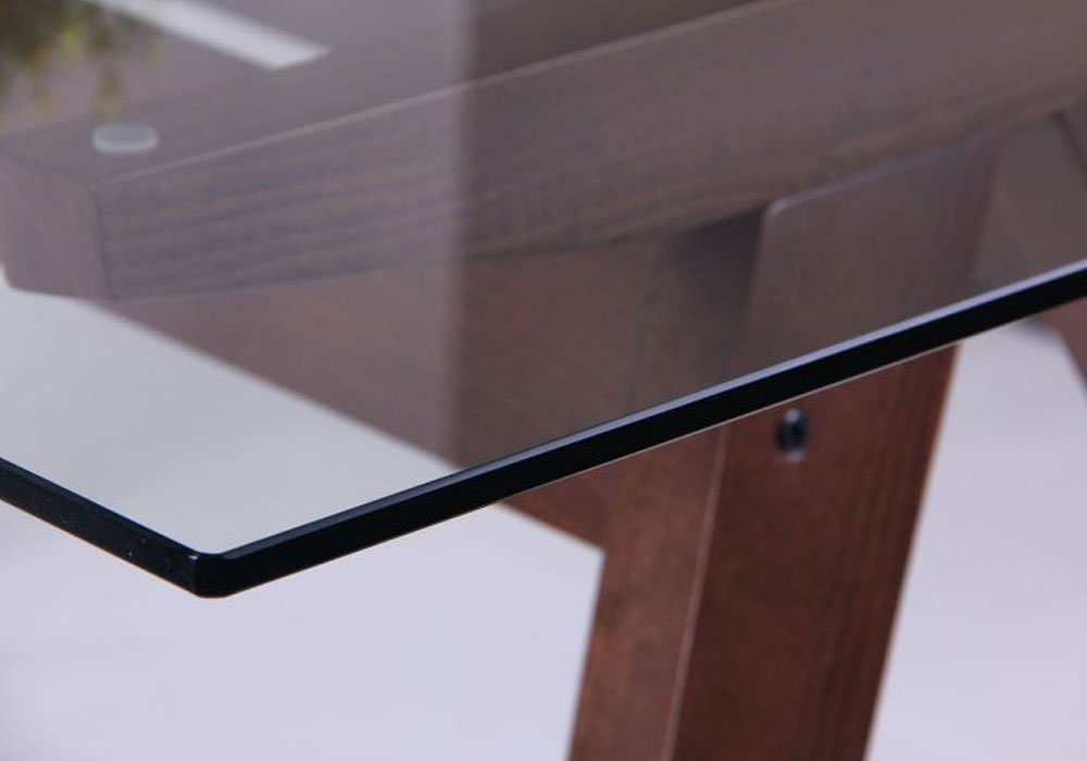 Стіл скляний "Ельба" компанії Сатурн чудово впишеться в будь-який інтер'єр кухні або їдальні. Його незвичайний дизайн радує око. Його стільниця виготовлена з прозорого розжареного скла з обробленими гладкими краями, V-подібні ніжки - з масиву бука , покритого лаком для більшої довговічності.