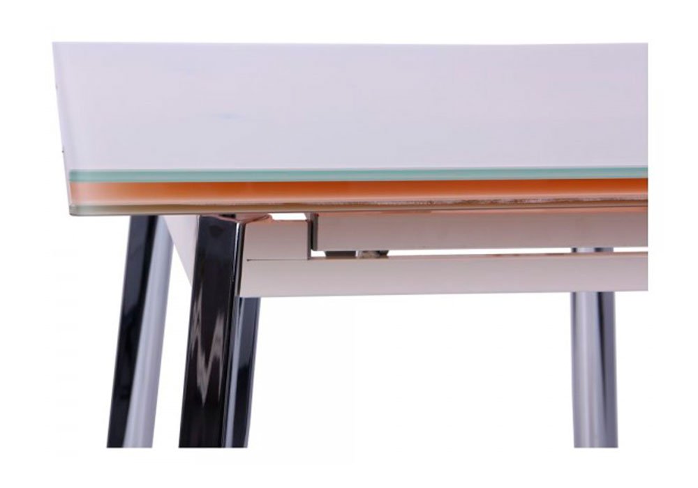 Розкладний обідній стіл "Вікторія" складається зі скляної стільниці, пофарбованої в вершковий колір, і хромованого каркаса . Найкраще ця модель підійде для кухні або їдальні в стилі хай-тек . Зручний і простий механізм дозволить розкласти стіл в лічені секунди. Стільниця має захисне покриття , що запобігає появі подряпин.