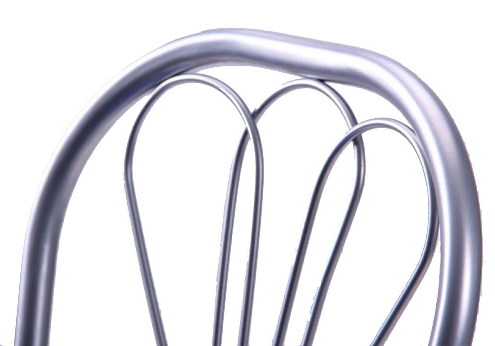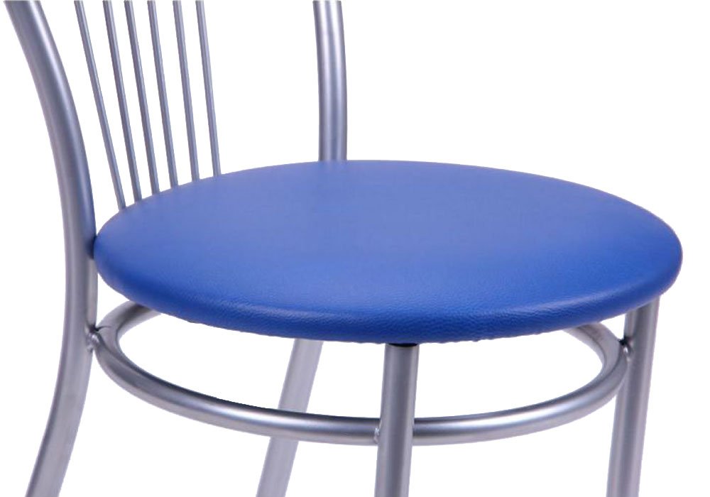 Стілець "Велес" компанії Сатурн добре підійде як для кухні у вашому будинку, так і для барного залу або громадській їдальні. Це простий і надійний стілець з металевим каркасом і круглим м'яким сидінням, обтягнутим оббивкою з екокожі . Спинка стільця прикрашена орнаментом на основі квіткових мотивів з металевих прутів, які утворюють комфортне поглиблення для опори спини.
