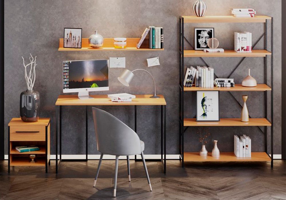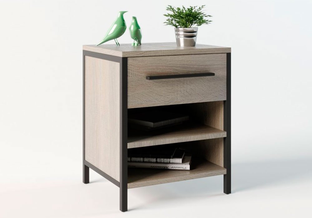 Зверху тумби розміщений висувною ящик , нижче - дві місткі відкриті полки . Виріб можна використовувати як самостійну меблі і як доповнення до письмового або комп'ютерного столу. Тумба є також оптимальним рішенням для малогабаритних приміщень.