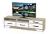 Т Умбу під телевізор "388" Тиса Меблі відрізняє модне дизайнерське рішення і функціональність. Завдяки наявності безлічі висувних шухлядок і відкритих відділень тумба дозволяє використовувати її для зберігання найрізноманітніших предметів від запасних батарейок для пульта ДУ до книг і сувенірів.