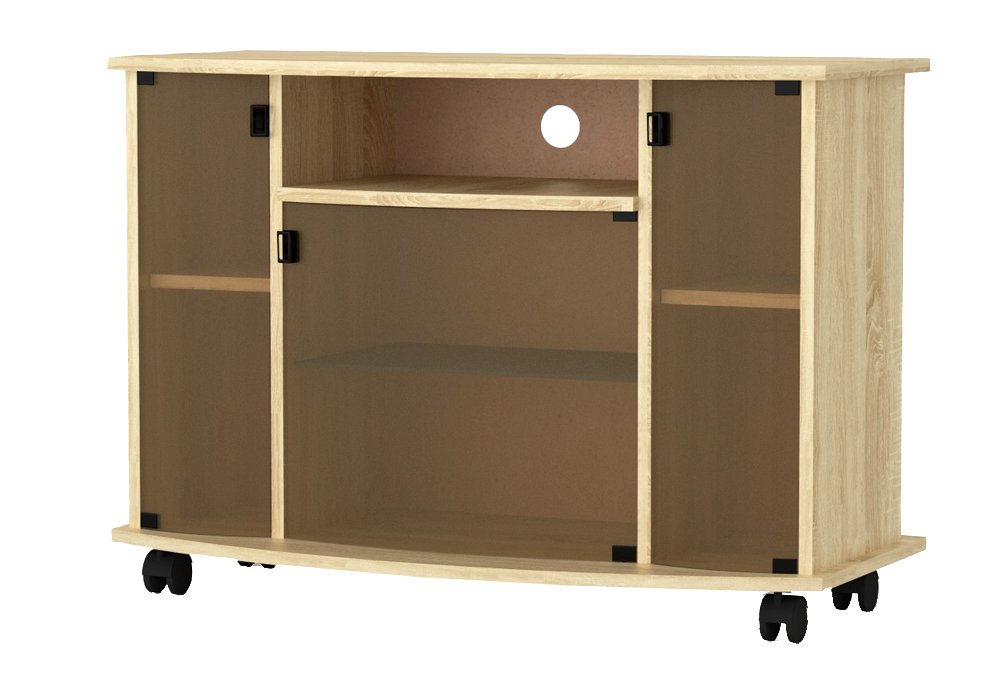 Тумба РТВ "NEW Америка" хороший вибір для вашого ТВ. У тумбі є багато полиць, куди можна покласти велику кількість Ваших журналів або DVD дисків. У нішу тумби можна поставити апаратуру. Головною прикрасою тумби є тоноване скло , за дверцятами по одній полиці. Тумба "NEW Америка" коштує на роликових опорах, її легко буде переміщати.